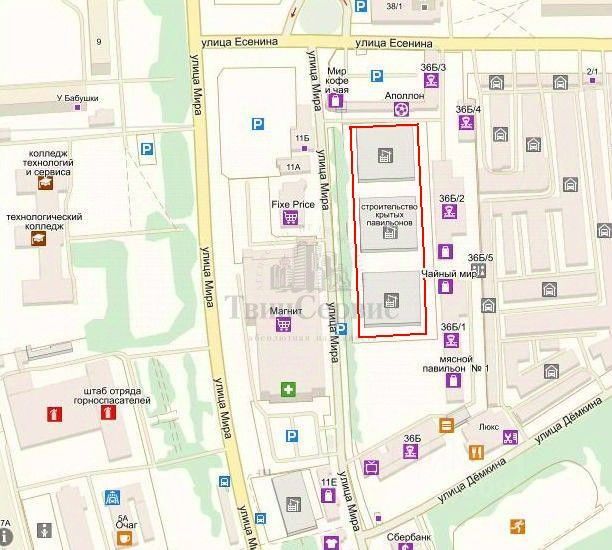 Местоположение: г. Новомосковск, улица Мира,д.36 Б,стр 1-3 (рядом с гипермаркетом МАГНИТ). Расположение объекта: Объект расположен в густонаселенном районе города, на территории бывшего Урванского рынка, являющегося исторически сложившимся местом торговли в Новомосковске. Улица Мира, являющаяся одной из ключевых транспортных артерий города соединяет ''спальные'' районы города с центром, а также является основным транспортным узлом, соединяющим г. Новомосковск с пригородами. Наличие развитой сети общественного транспорта. Вблизи проходят 12 автобусных маршрутов и 8 маршрутных такси. Остановка общественного транспорта находится рядом с комплексом. В непосредственной близости находятся: - гипермаркет ''Магнит'', - ''Фикспрайс'' - множество других коммерческих объектов. Удобство подъезда и огромный паркинг для автотранспорта (не менее 250 стояночных мест)
