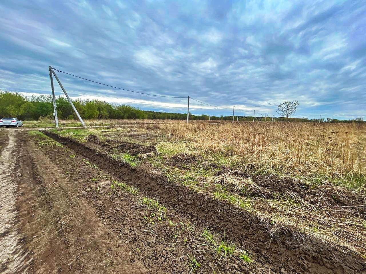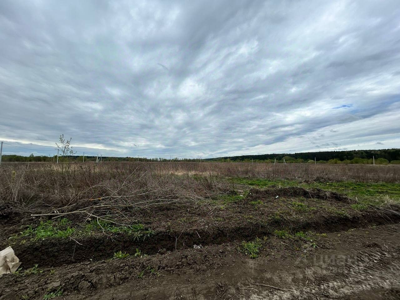 Продается земельный участок в живописном месте, рядом с берегом реки Оки. Вдоль участка идут столбы, что обеспечивает удобство для подключения электричества.