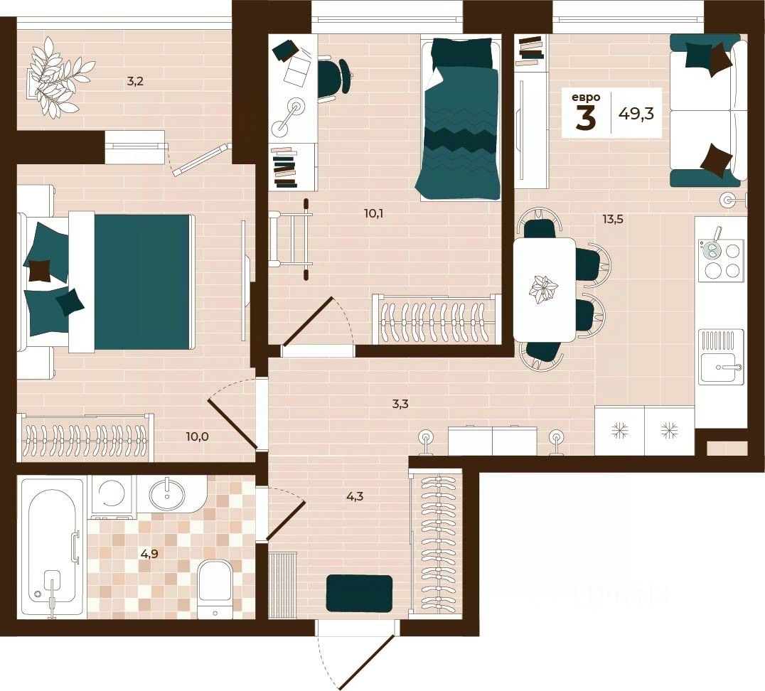 Продаётся 3-комнатная квартира в строящемся доме (Дом 28), срок сдачи: I-кв. 2027, общей площадью 49.3 кв.м., на 14 этаже. Расположение, транспортная доступность Новый жилой комплекс ''Юго-Восточный'' строится в Туле, в 3,5 км от центра города. Благодаря удачным транспортным развязкам, автолюбители смогут доехать до центральных кварталов примерно за 5 10 минут, составив наиболее быстрый и удобный маршрут с учетом загруженности дорог. Проблем с мобильностью не возникнет и у пассажиров общественного транспорта. Рядом с домом расположены остановки автобусов и маршрутных такси, которые быстро довезут до любого района города. Так, чтобы добраться до центра, следует дойти пешком до остановки ''Медтехника'', где останавливается маршрутное такси, доезжающее до центральных кварталов всего за 7 8 минут. Инфраструктура Район, где возводится новый жилой комплекс, активно застраивается, и сеть инфраструктуры сов временем будет расширяться. Но и сейчас все, что нужно для комфортной жизни в городе, находится недалеко от жилого комплекса. В шаговой доступности расположены продуктовые магазины: ''Виктория'', ''Овощи-фрукты'', Магазин рыбы и мяса птицы, магазин мяса и колбас ''У Максима'', супермаркеты ''Дикси'', ''Пятерочка'', ''SPAR''. Неподалеку находится гипермаркет ''Линия'', крупный торговый центр, в котором расположены отделения банков, гипермаркет ''Глобус'', салон оптики, мебельный магазин ''Столплит'', зоомагазин ''Четыре лапы'' и пр. В соседнем здании находится строительный гипермаркет ''Леруа Мерлен'', за ним крупный магазин товаров для спорта, туризма и активного отдыха ''Декатлон''.Недалеко от жилого комплекса открыты кафе и рестораны: кофейня ''Bonape'', пиццерия ''Культура'', кафе ''Вкуснов'', кафе быстрого обслуживания ''Rapido'', ресторан ''У фонтана'' и пр.В районе есть аптеки, поликлиники, диагностические центры. В шаговой доступности от жилого комплекса расположено несколько детских садиков, в том числе, садик комбинированного вида ''Алые паруса''. Есть дошкольные отделения, входящие в состав образовательных центров, Центры развития ребенка. Поблизости расположены средние школы, в том числе, школа для детей с ОВЗ. Рядом с жилым комплексом находится Тульская Духовная Семинария и Суворовское училище. Надежность застройщик: достраивает объект ООО Ин-Групп.АрхитектураЖилой комплекс будет представлен 19 монолитно-кирпичными корпусами переменной этажности, выполненными в едином архитектурном стиле. При строительстве ЖК ''Юго-Восточный'' применяются современные материалы высокого качества, которые обеспечивают надежность домов и комфортный микроклимат в помещениях. Каждая секция оснащается современными лифтами. Помещения общего пользования отделываются экологичными материалами. Квартиры предлагаются однокомнатные (от 43,9 кв. м), двухкомнатные (от 45,8 кв. м), трехкомнатные (от 60,4 кв. м) и четырехкомнатные (от 87,2 кв. м), а также уютные студии (от 28,9 кв. м).На внутренней территории проводится комплексное благоустройство: озеленение, организация игровых площадок, мест для отдыха и зан