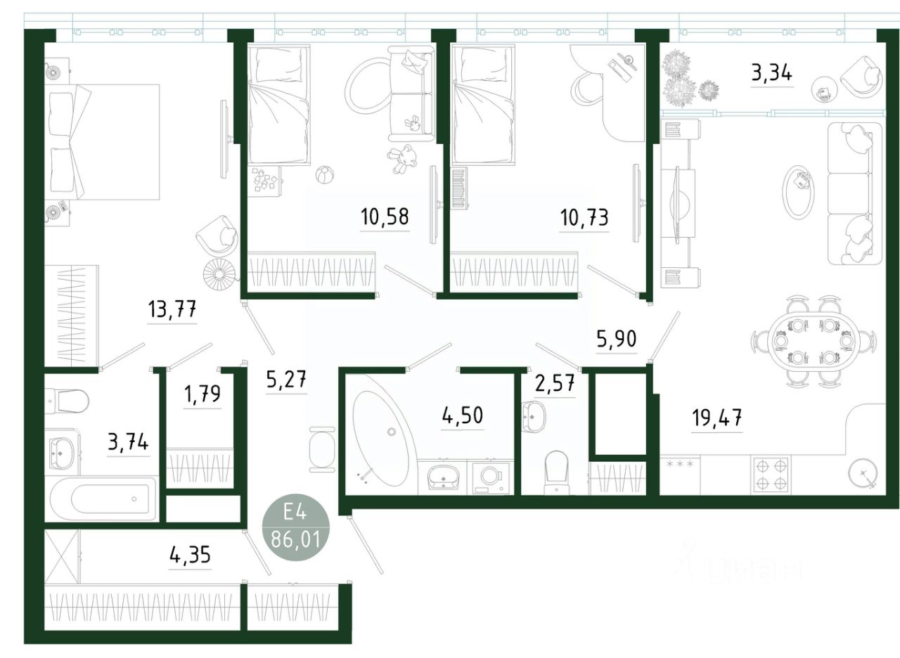 Общая площадь86,01 м2