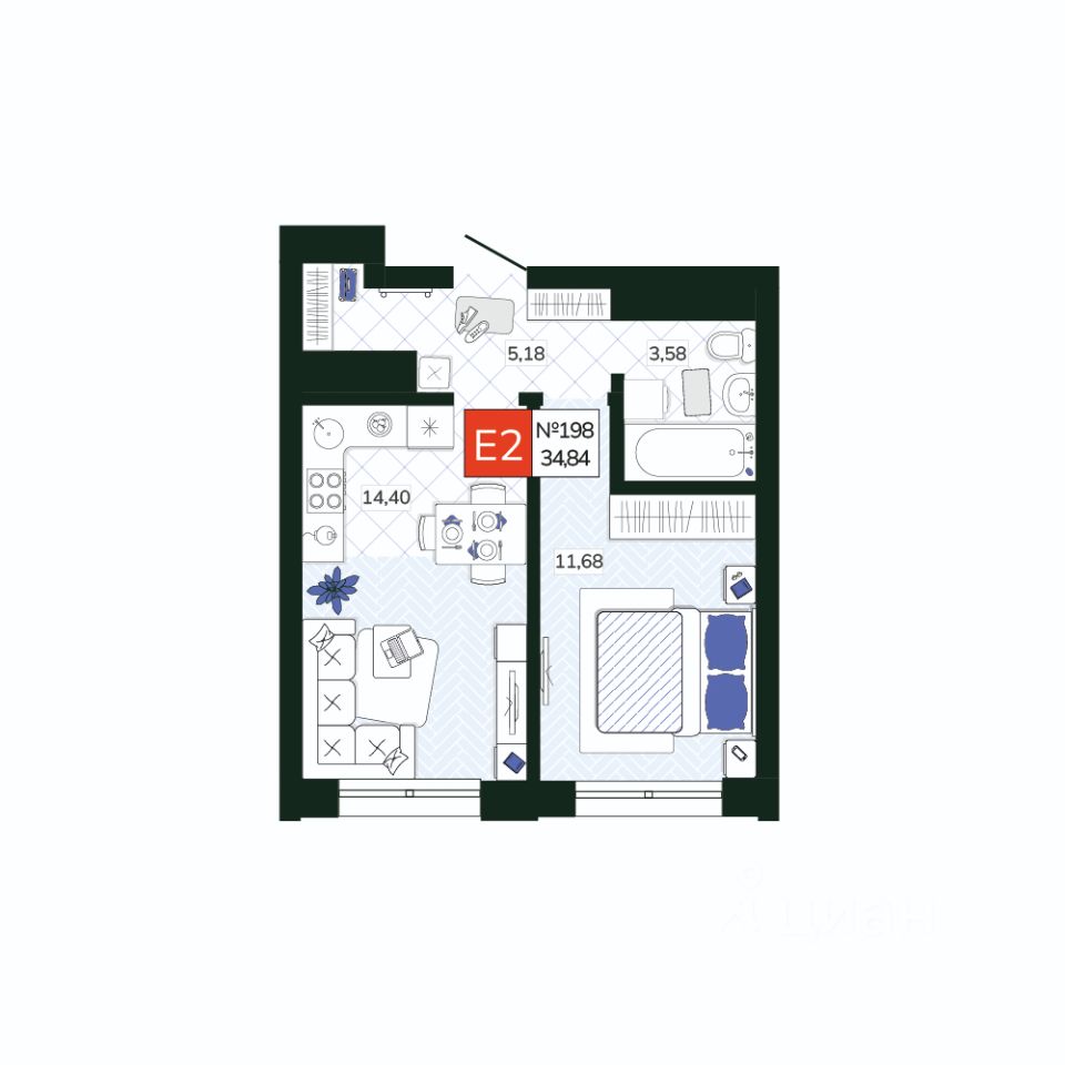 Общая площадь34,84 м2