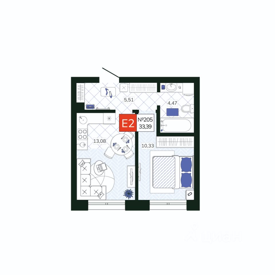 Общая площадь33,39 м2