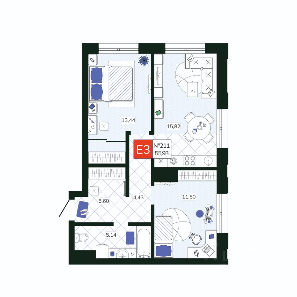 Общая площадь55,93 м2