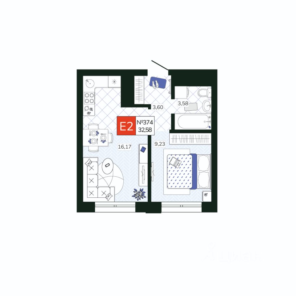 Общая площадь32,58 м2