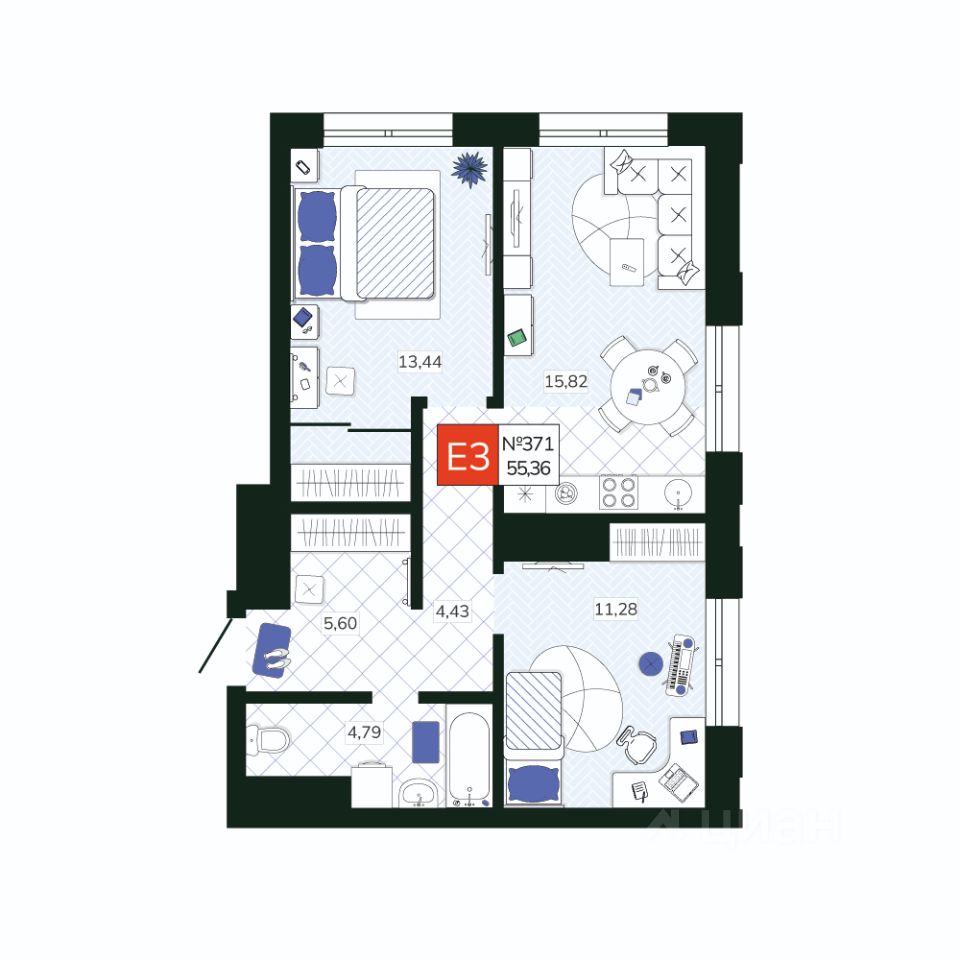Общая площадь55,36 м2