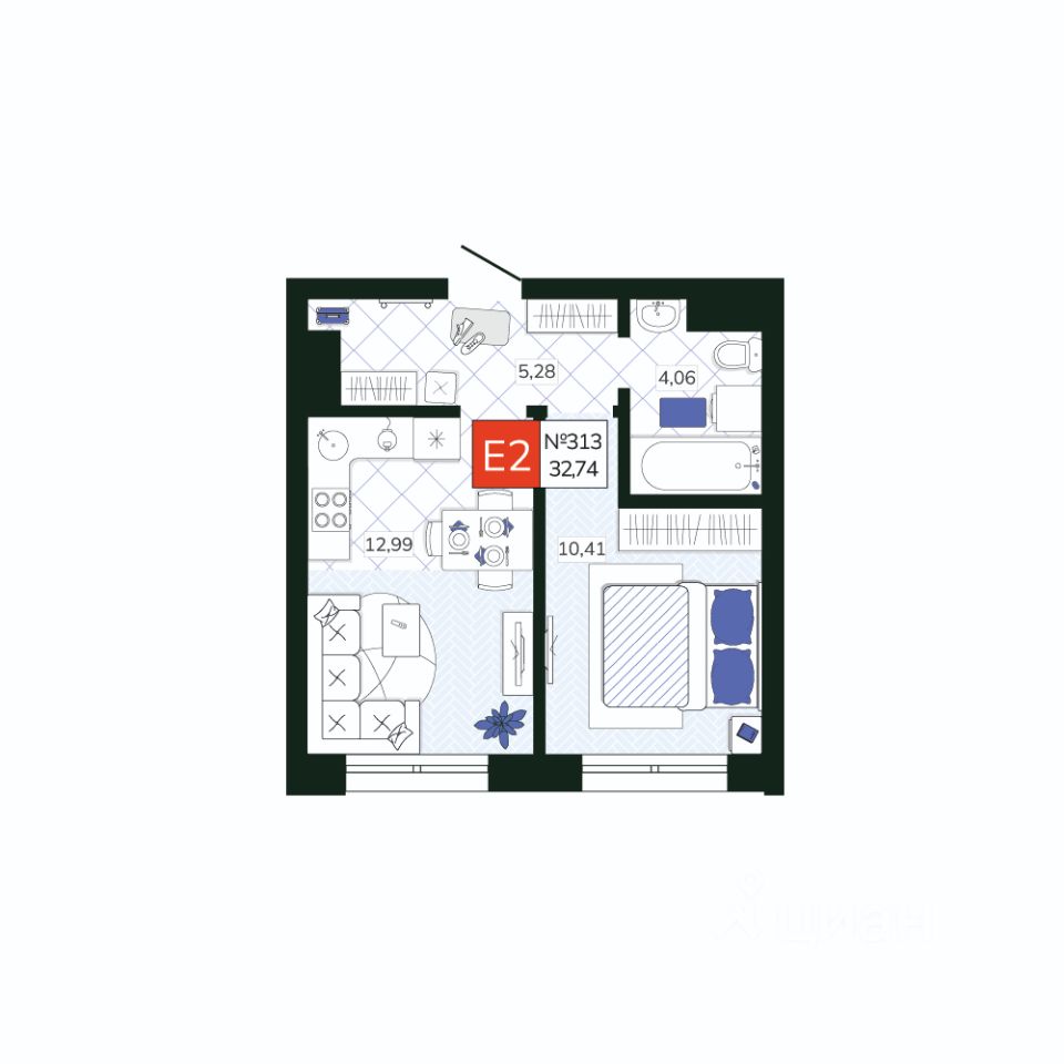 Общая площадь32,74 м2