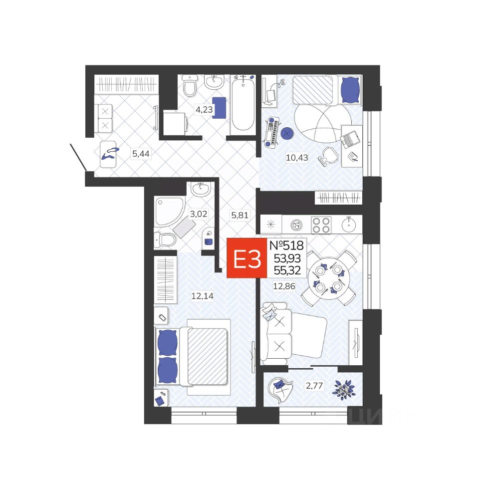 Общая площадь55,32 м2