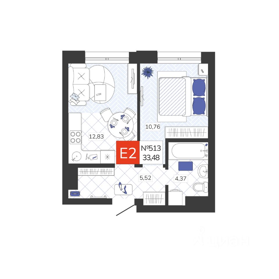 Общая площадь33,48 м2