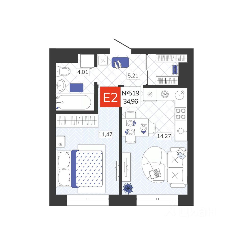 Общая площадь34,96 м2