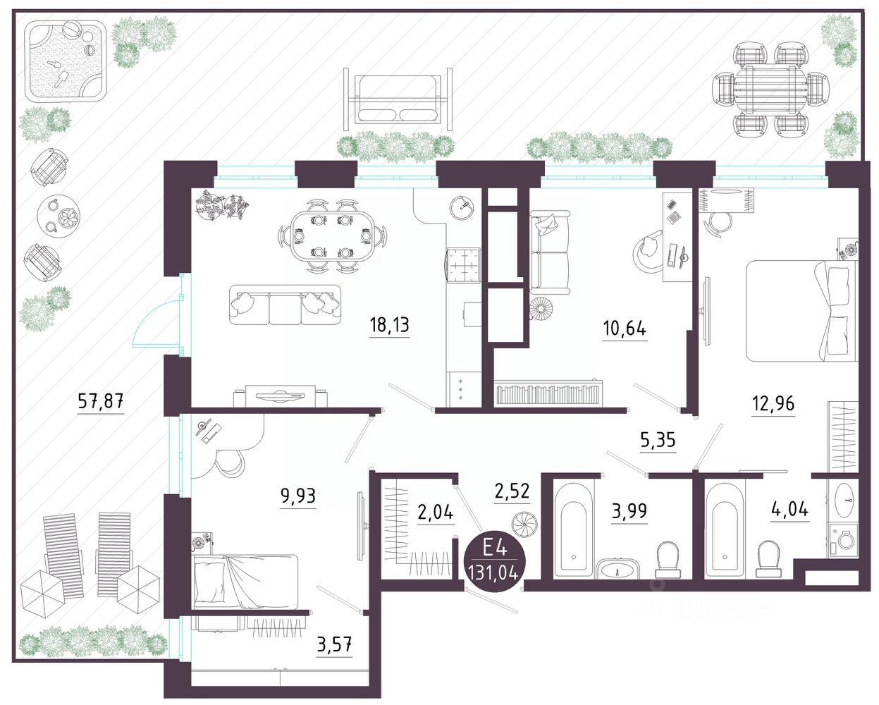 Общая площадь131,04 м2