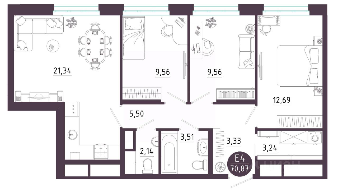 Общая площадь70,87 м2