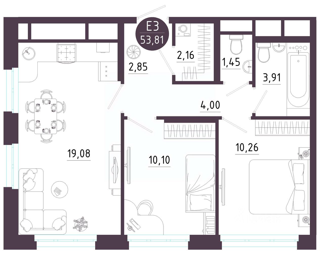 Общая площадь53,81 м2