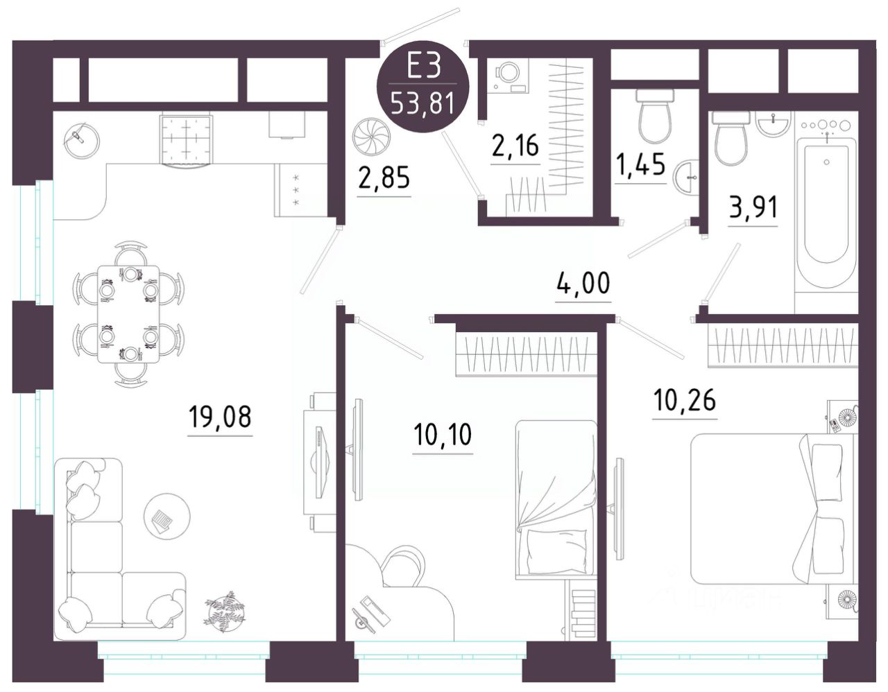 Общая площадь53,81 м2