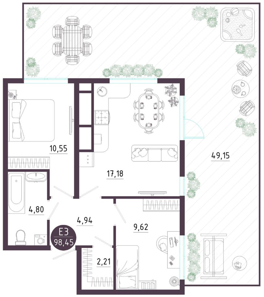 Общая площадь98,45 м2