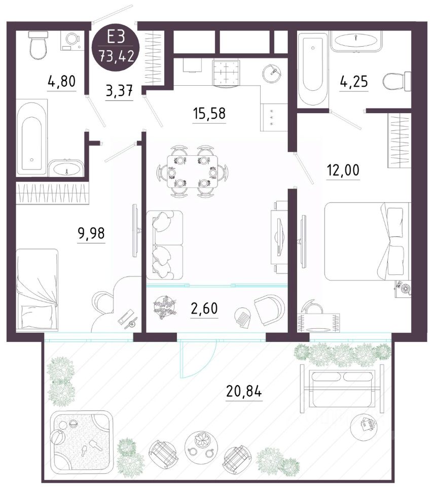 Общая площадь73,42 м2