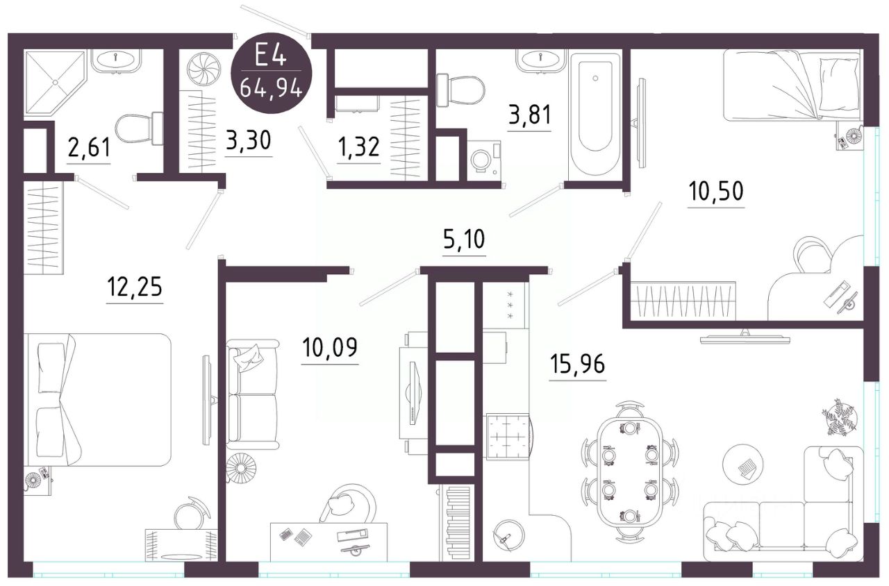 Общая площадь64,94 м2