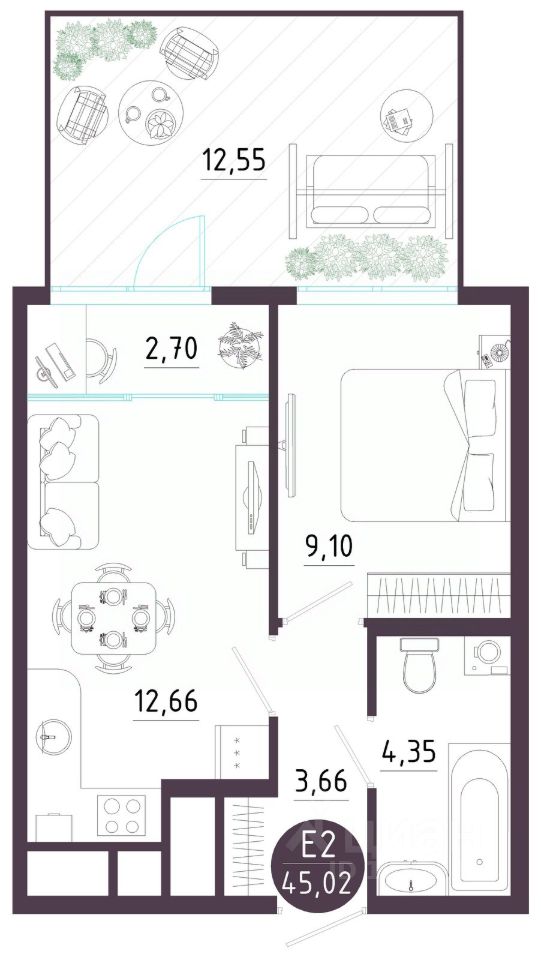 Общая площадь45,02 м2
