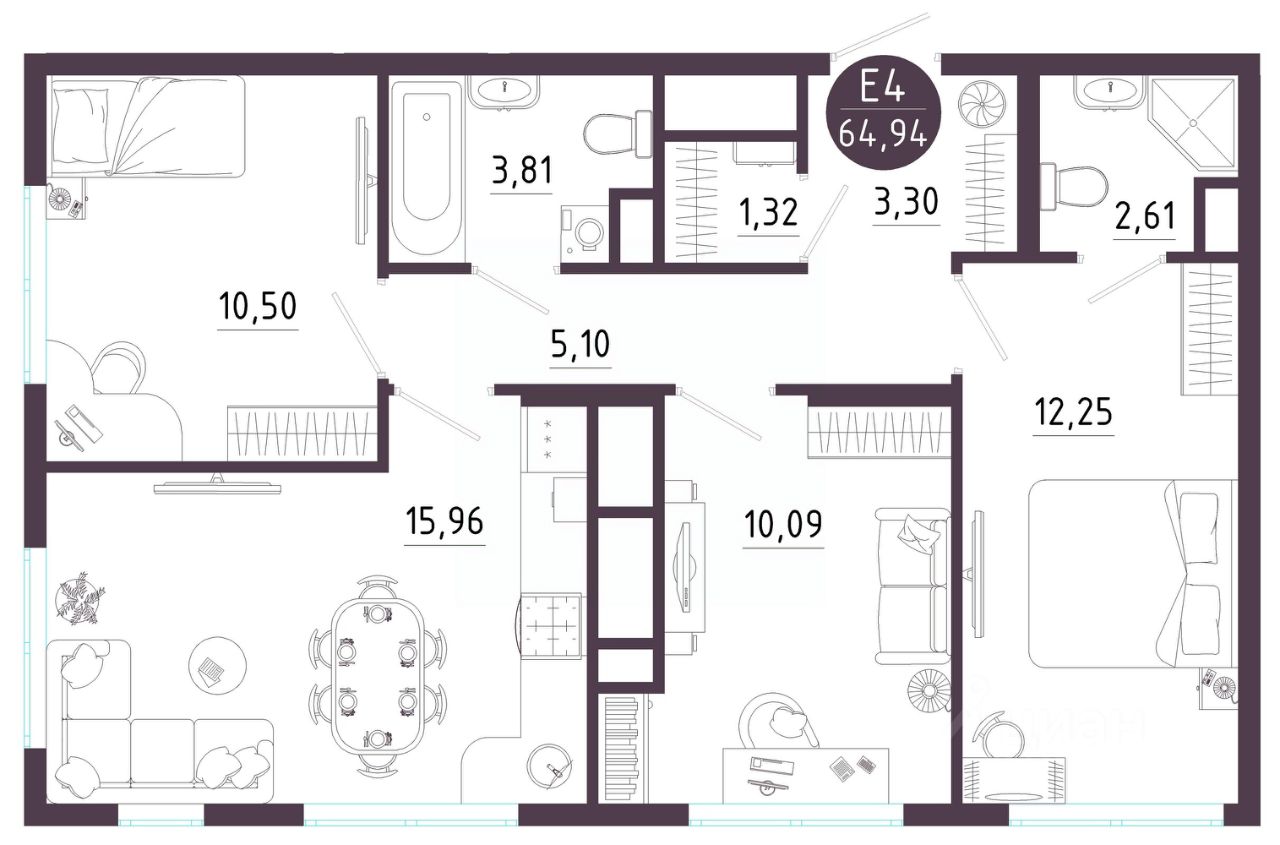 Общая площадь64,94 м2