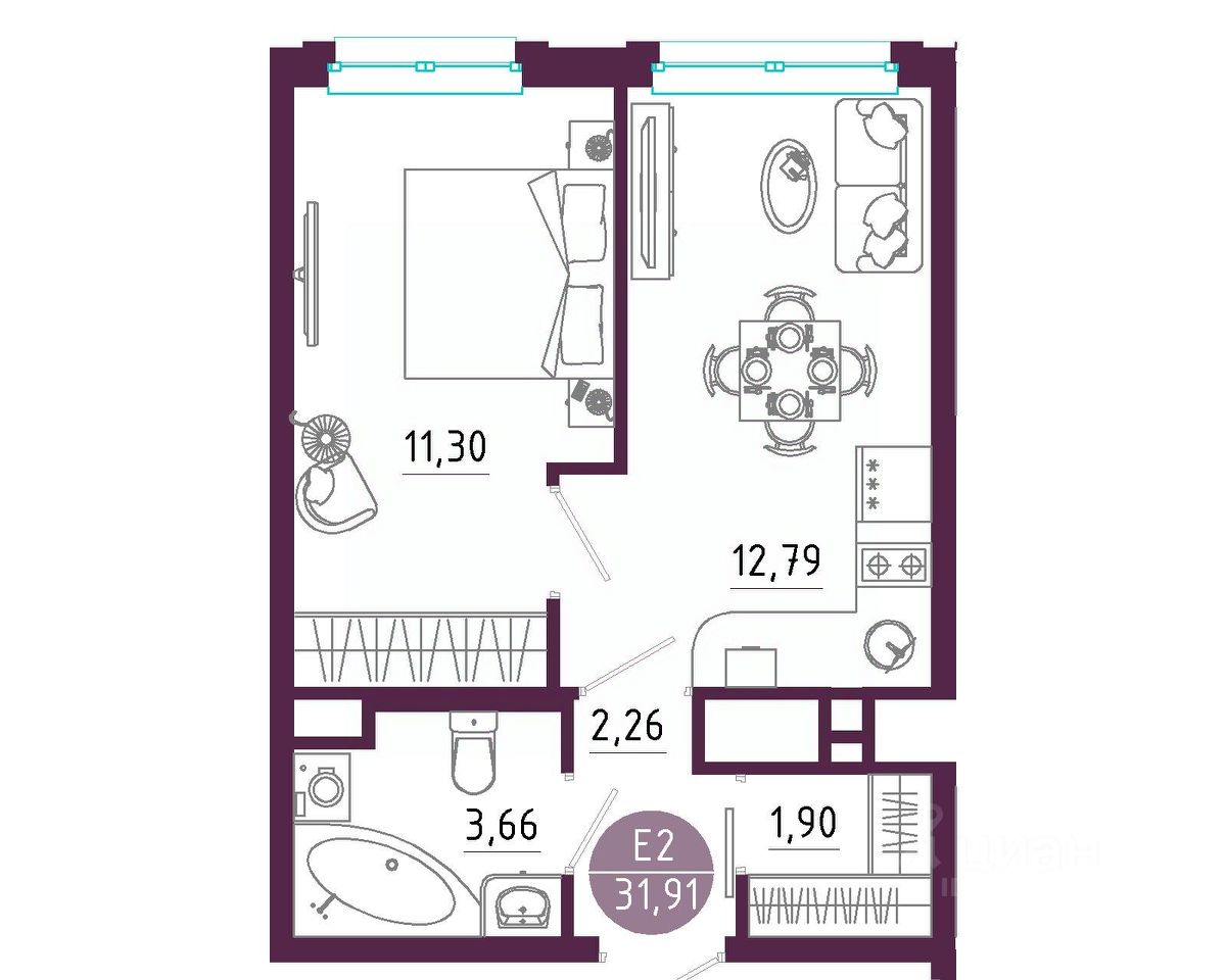 Общая площадь31,91 м2