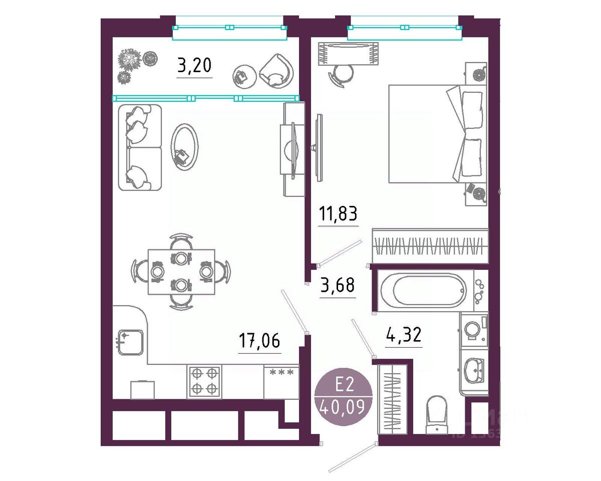 Общая площадь40,09 м2