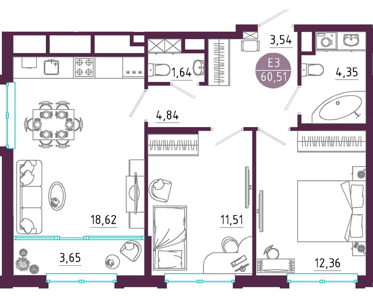 Общая площадь60,51 м2