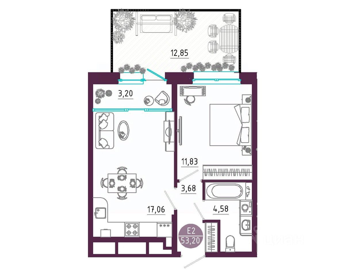 Общая площадь53,2 м2