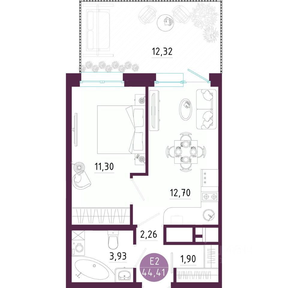 Общая площадь44,41 м2