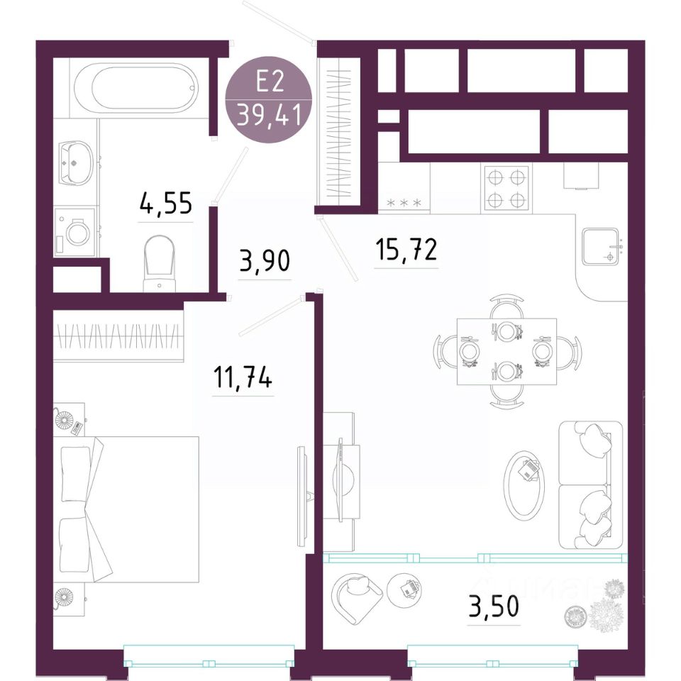 Общая площадь39,41 м2