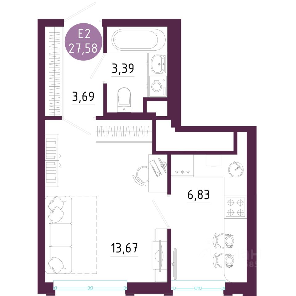 Общая площадь27,58 м2