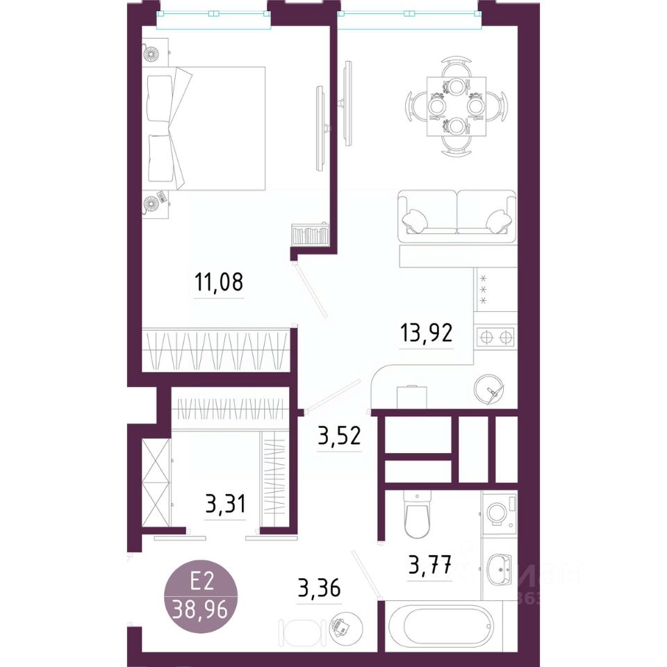 Общая площадь38,96 м2