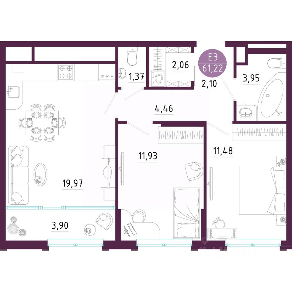 Общая площадь61,22 м2