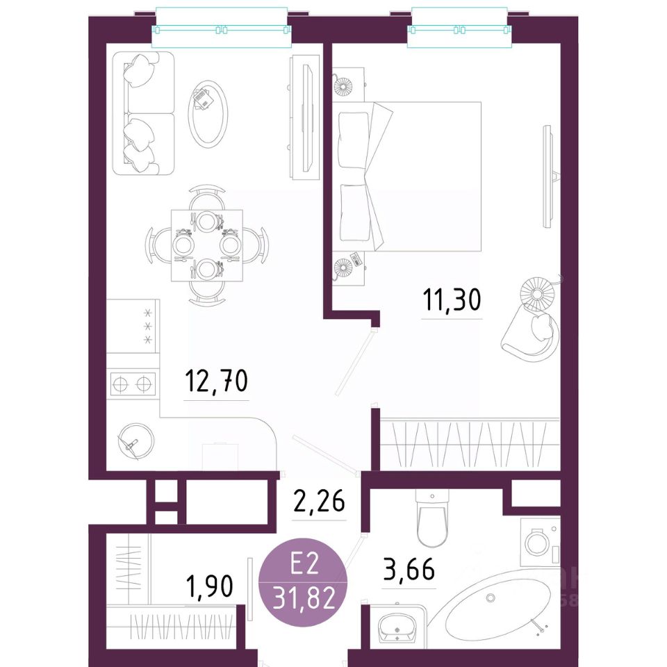 Общая площадь31,82 м2