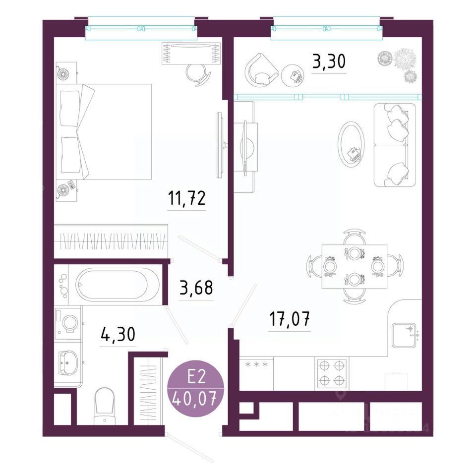 Общая площадь40,07 м2
