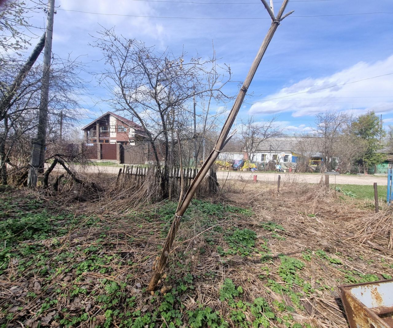 На участке есть дом на два хозяина, он не в жилом состоянии, полностью требует ремонта. Подходит под прописку.