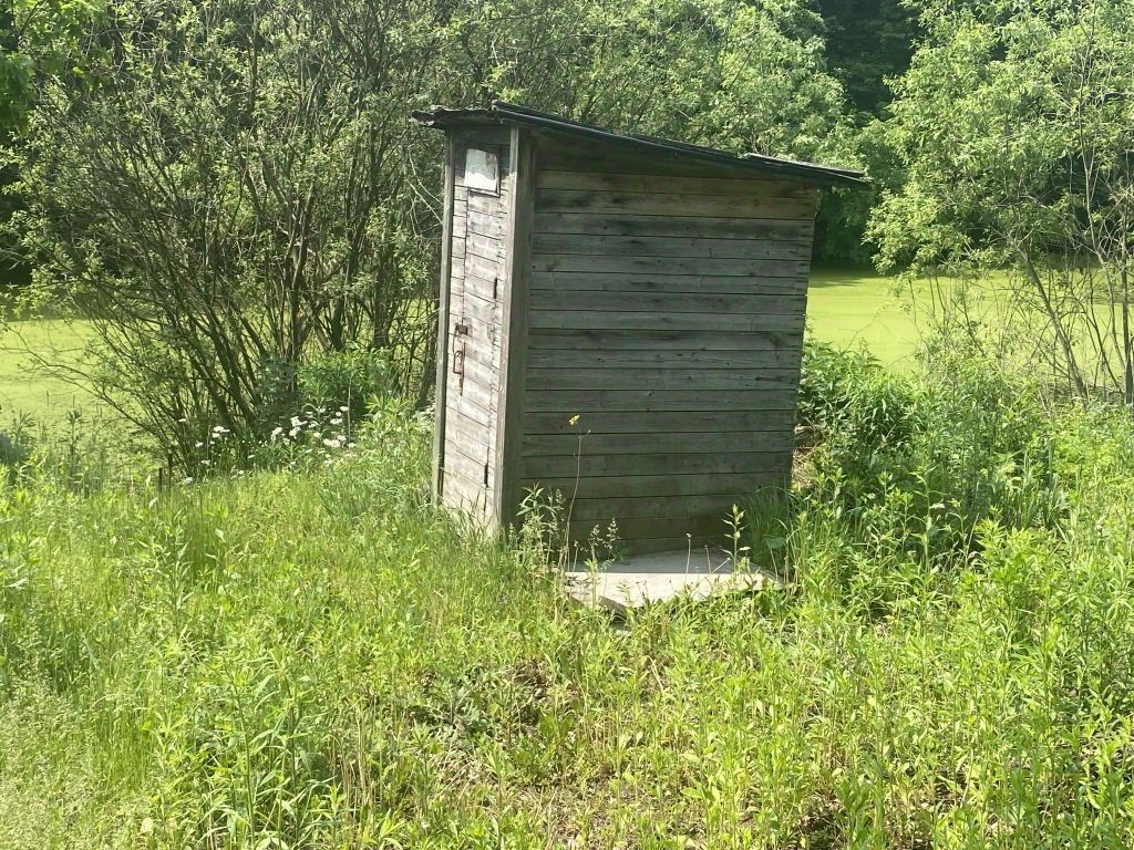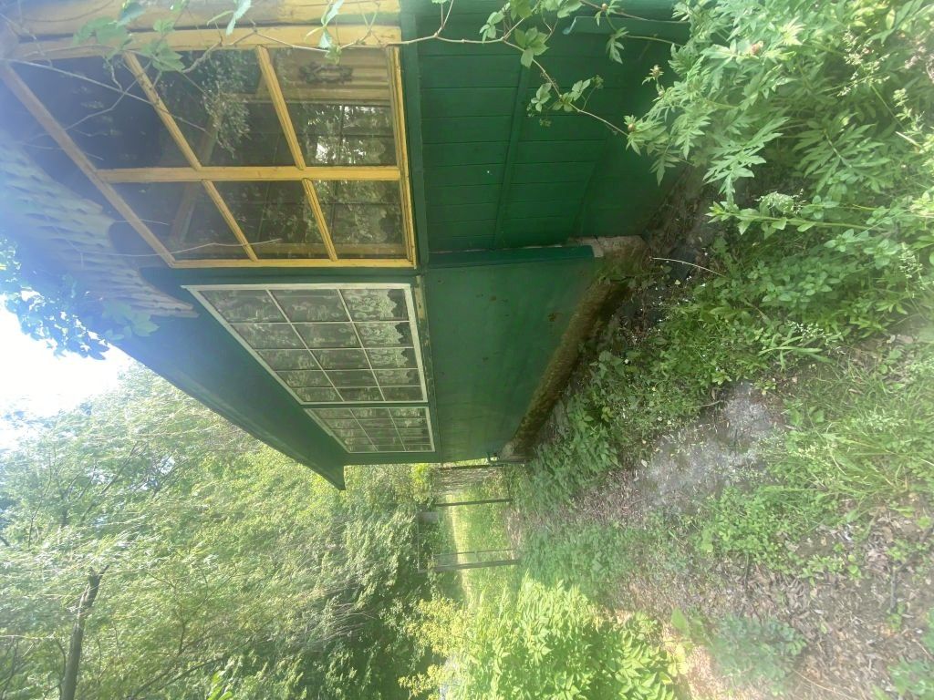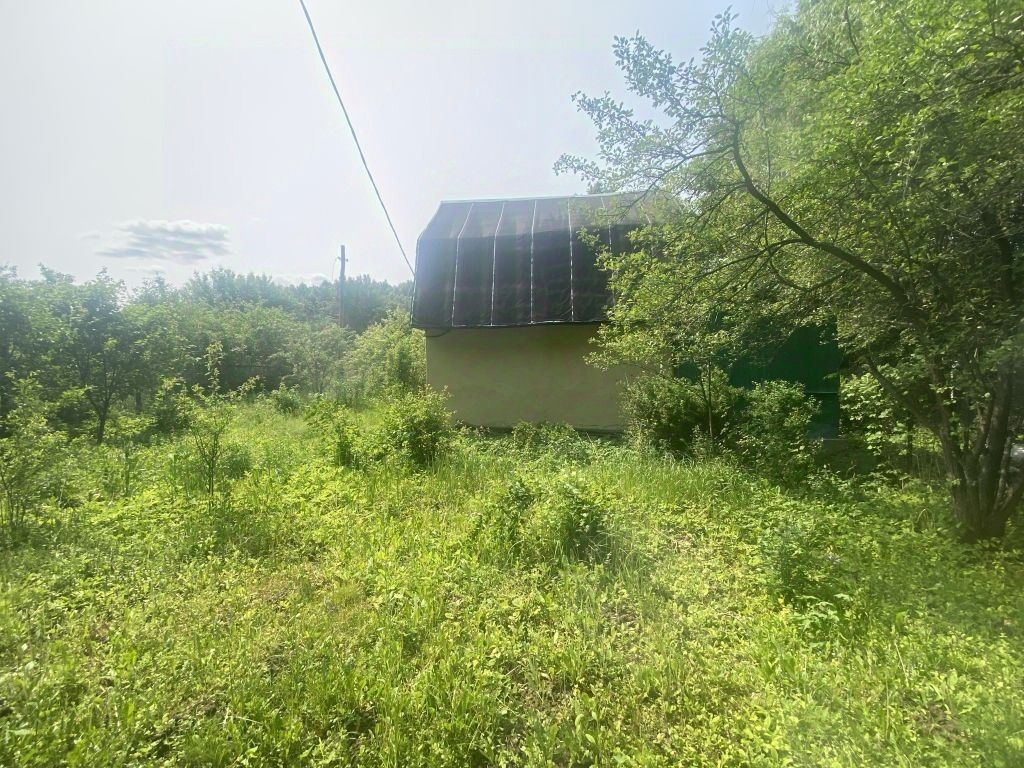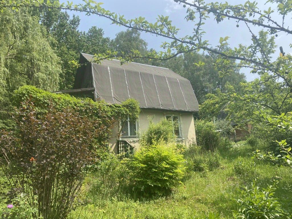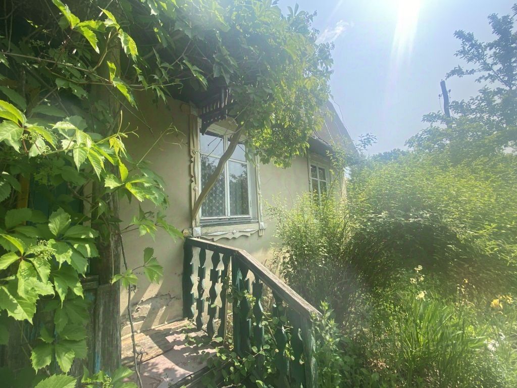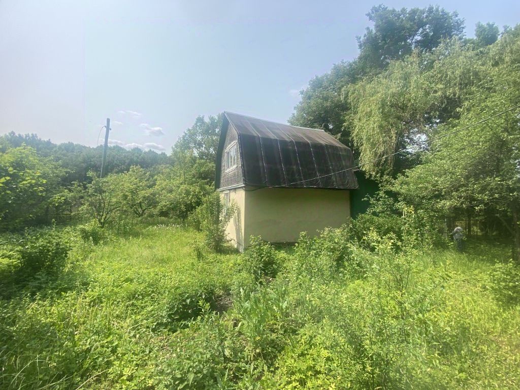 За участком расположен пруд. На участке растут яблони, смородина, крыжовник и малина.