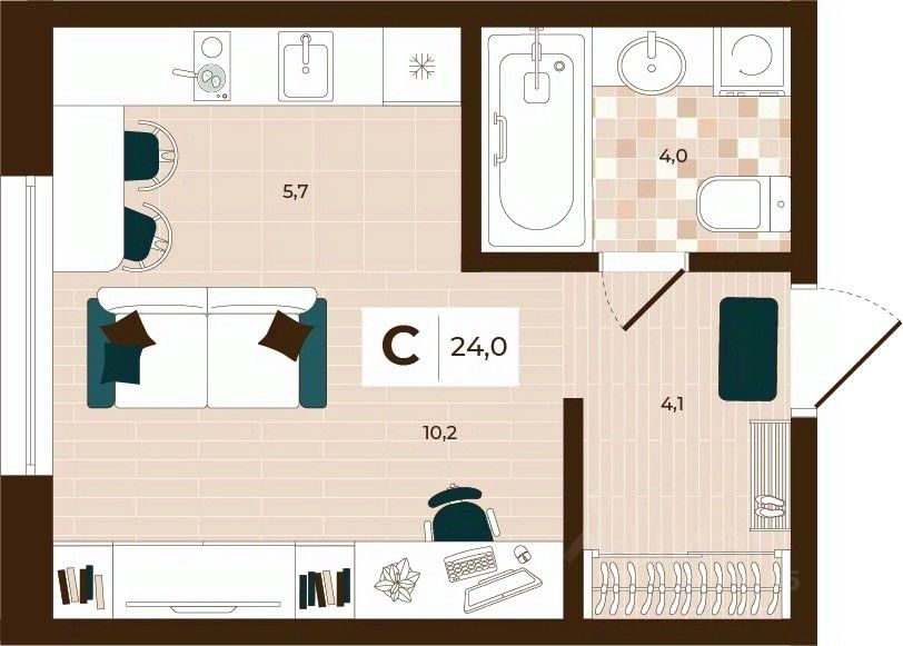 Продаётся студия в строящемся доме (Дом 28), срок сдачи: I-кв. 2027, общей площадью 24 кв.м., на 10 этаже. Расположение, транспортная доступность Новый жилой комплекс ''Юго-Восточный'' строится в Туле, в 3,5 км от центра города. Благодаря удачным транспортным развязкам, автолюбители смогут доехать до центральных кварталов примерно за 5 10 минут, составив наиболее быстрый и удобный маршрут с учетом загруженности дорог. Проблем с мобильностью не возникнет и у пассажиров общественного транспорта. Рядом с домом расположены остановки автобусов и маршрутных такси, которые быстро довезут до любого района города. Так, чтобы добраться до центра, следует дойти пешком до остановки ''Медтехника'', где останавливается маршрутное такси, доезжающее до центральных кварталов всего за 7 8 минут. Инфраструктура Район, где возводится новый жилой комплекс, активно застраивается, и сеть инфраструктуры сов временем будет расширяться. Но и сейчас все, что нужно для комфортной жизни в городе, находится недалеко от жилого комплекса. В шаговой доступности расположены продуктовые магазины: ''Виктория'', ''Овощи-фрукты'', Магазин рыбы и мяса птицы, магазин мяса и колбас ''У Максима'', супермаркеты ''Дикси'', ''Пятерочка'', ''SPAR''. Неподалеку находится гипермаркет ''Линия'', крупный торговый центр, в котором расположены отделения банков, гипермаркет ''Глобус'', салон оптики, мебельный магазин ''Столплит'', зоомагазин ''Четыре лапы'' и пр. В соседнем здании находится строительный гипермаркет ''Леруа Мерлен'', за ним крупный магазин товаров для спорта, туризма и активного отдыха ''Декатлон''.Недалеко от жилого комплекса открыты кафе и рестораны: кофейня ''Bonape'', пиццерия ''Культура'', кафе ''Вкуснов'', кафе быстрого обслуживания ''Rapido'', ресторан ''У фонтана'' и пр.В районе есть аптеки, поликлиники, диагностические центры. В шаговой доступности от жилого комплекса расположено несколько детских садиков, в том числе, садик комбинированного вида ''Алые паруса''. Есть дошкольные отделения, входящие в состав образовательных центров, Центры развития ребенка. Поблизости расположены средние школы, в том числе, школа для детей с ОВЗ. Рядом с жилым комплексом находится Тульская Духовная Семинария и Суворовское училище. Надежность застройщик: достраивает объект ООО Ин-Групп.АрхитектураЖилой комплекс будет представлен 19 монолитно-кирпичными корпусами переменной этажности, выполненными в едином архитектурном стиле. При строительстве ЖК ''Юго-Восточный'' применяются современные материалы высокого качества, которые обеспечивают надежность домов и комфортный микроклимат в помещениях. Каждая секция оснащается современными лифтами. Помещения общего пользования отделываются экологичными материалами. Квартиры предлагаются однокомнатные (от 43,9 кв. м), двухкомнатные (от 45,8 кв. м), трехкомнатные (от 60,4 кв. м) и четырехкомнатные (от 87,2 кв. м), а также уютные студии (от 28,9 кв. м).На внутренней территории проводится комплексное благоустройство: озеленение, организация игровых площадок, мест для отдыха и занятий спортом, пр