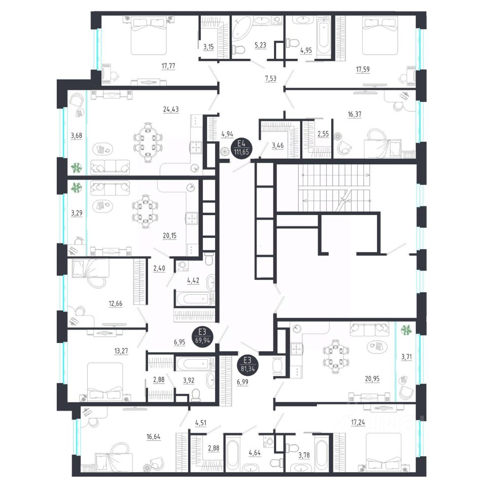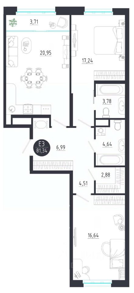 Общая площадь81,34 м2