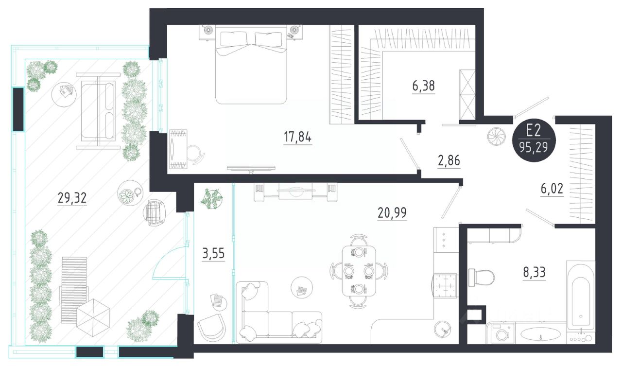 Общая площадь95,29 м2