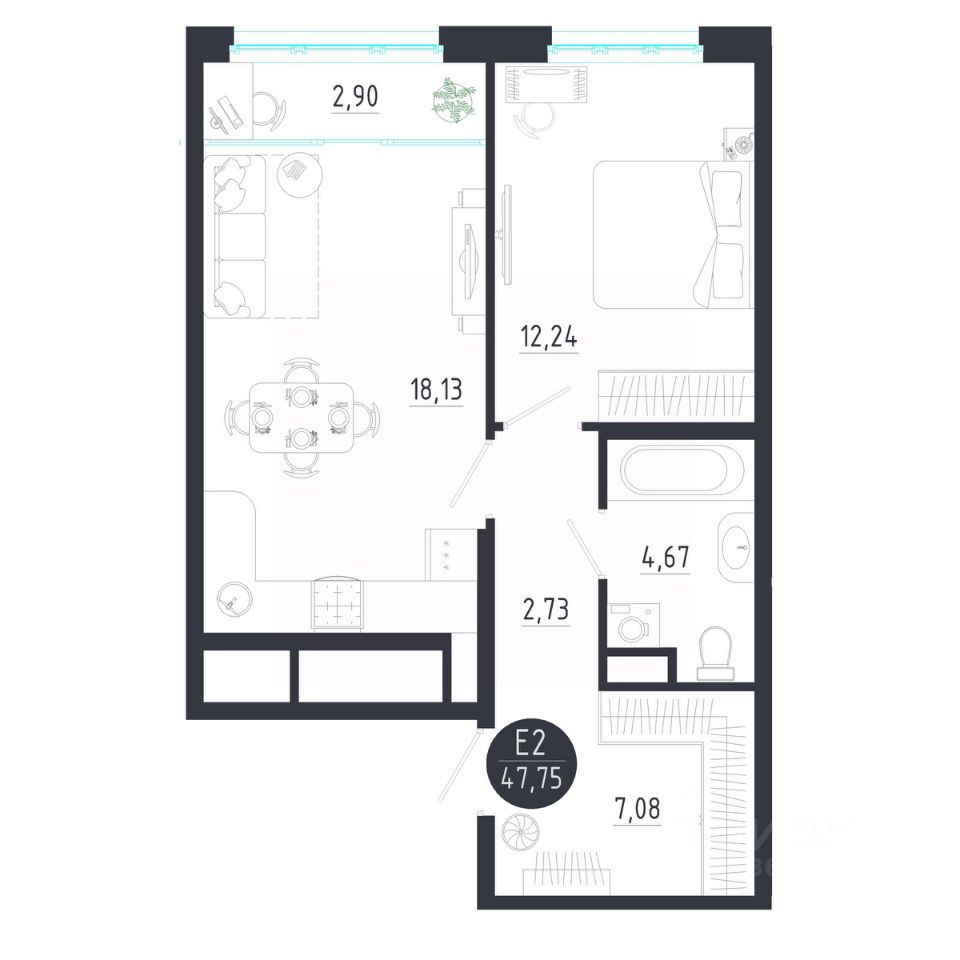 Общая площадь47,75 м2