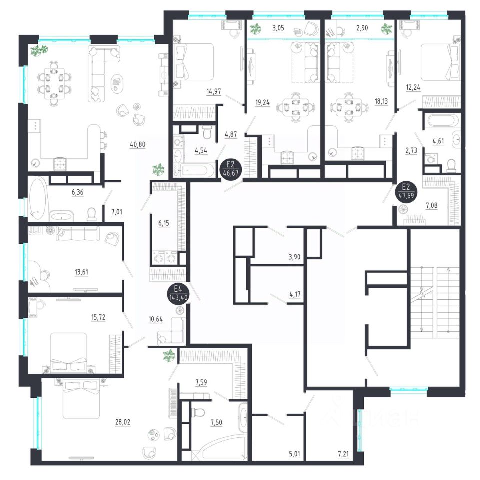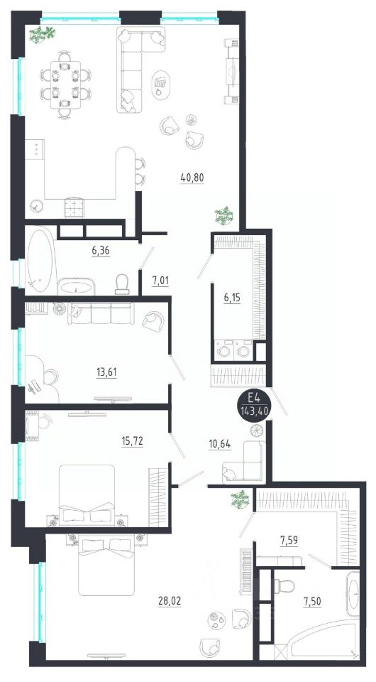 Общая площадь143,4 м2