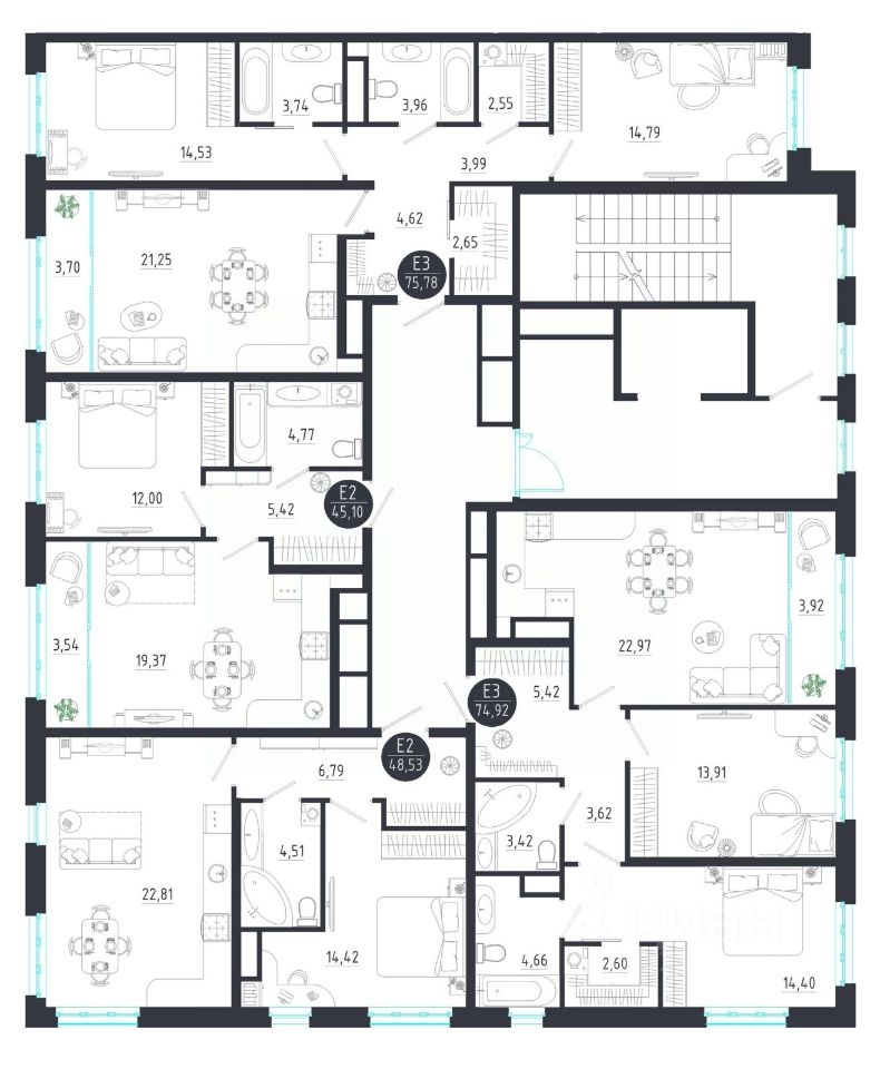 Общая площадь48,53 м2