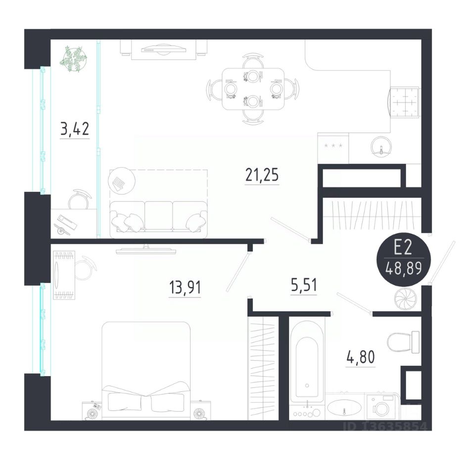 Общая площадь48,89 м2