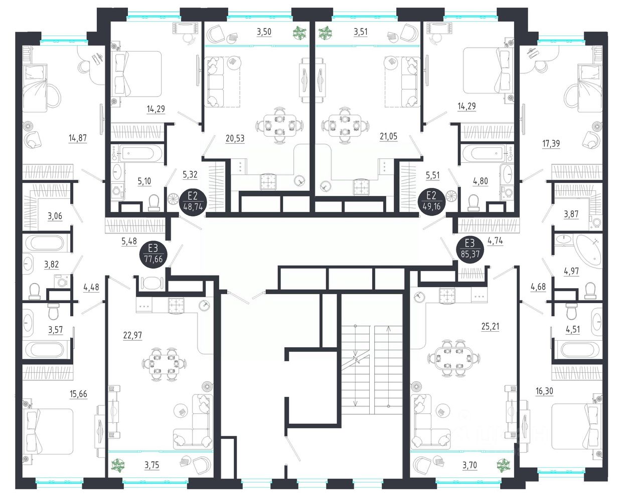 Продаётся 2-комнатная квартира в строящемся доме (Корпус 1), срок сдачи: IV-кв. 2028, общей площадью 77.66 кв.м., на 2 этаже. Новый жилой комплекс ''LANGERHALL'' от застройщика ''ЦСМ'' расположен по адресу: г. Тула, Оборонная улица