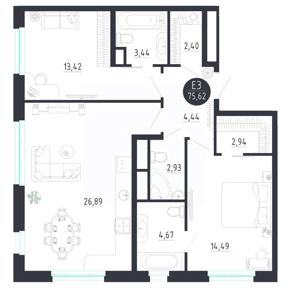 Общая площадь75,62 м2
