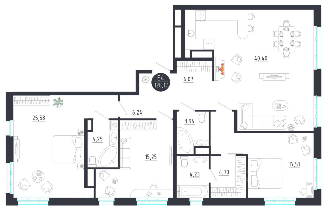 Общая площадь128,17 м2