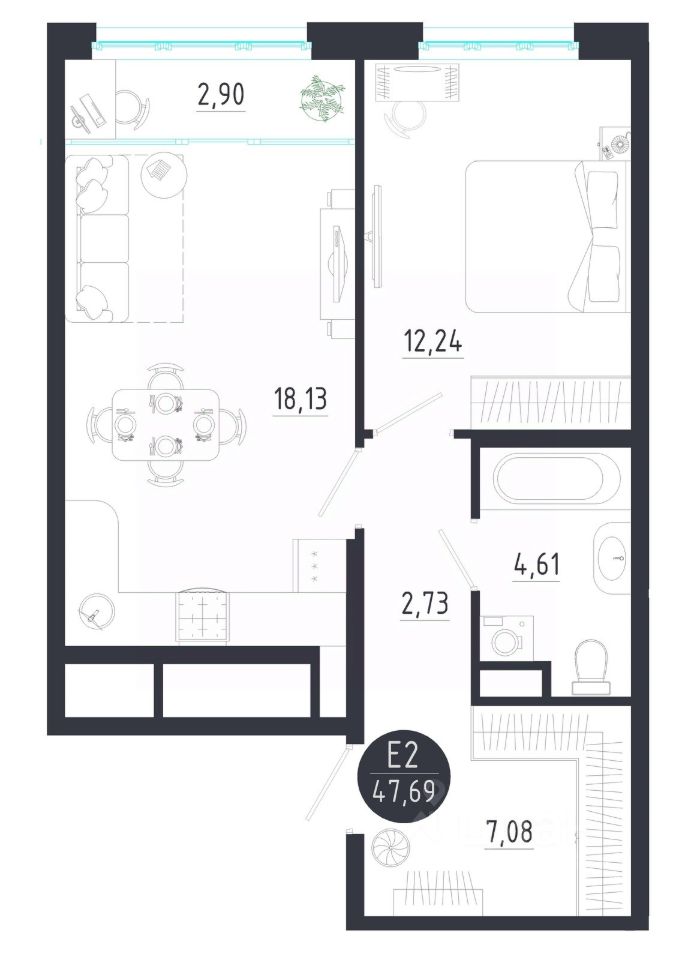 Общая площадь47,69 м2