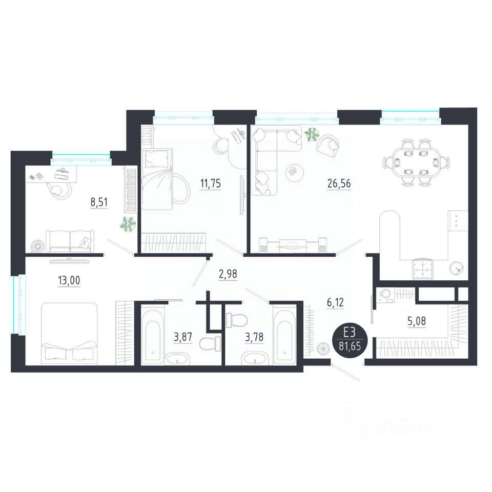 Общая площадь81,65 м2