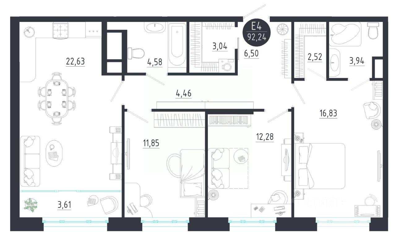Общая площадь92,24 м2
