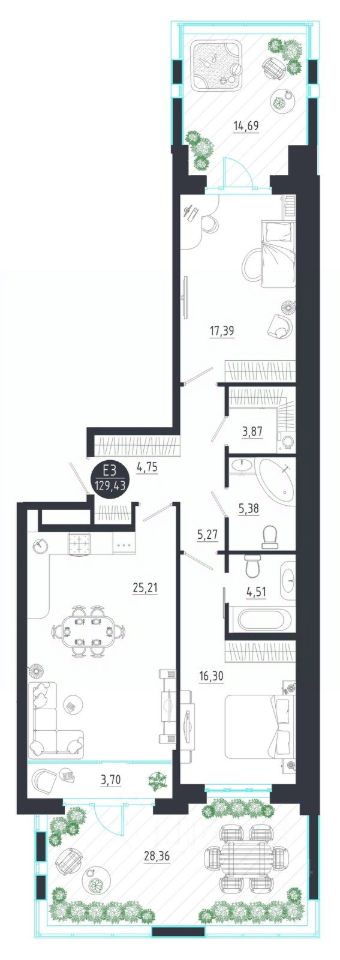 Общая площадь129,43 м2
