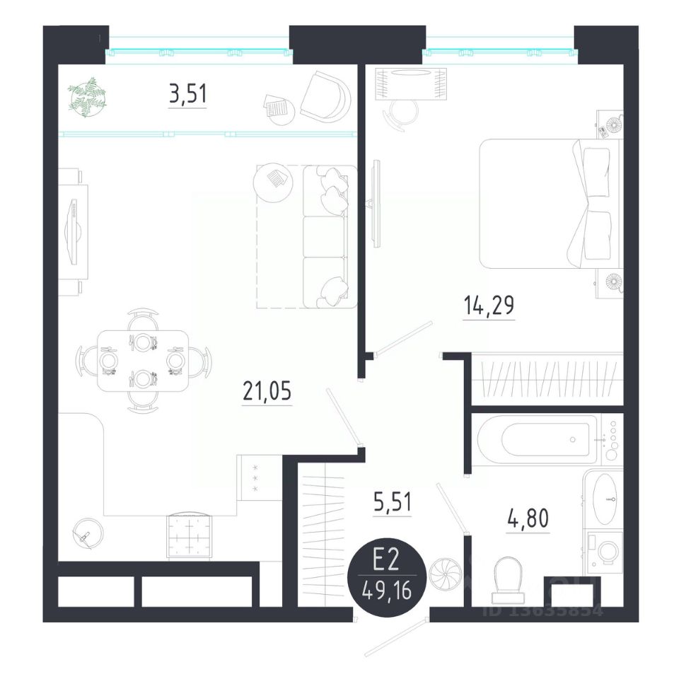 Общая площадь49,16 м2